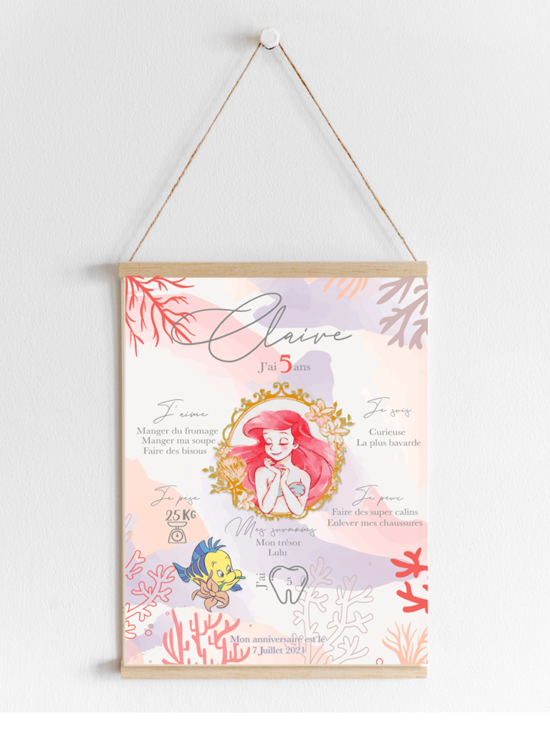 Plongez dans un décor où coquillages, perles, étoiles de mer et touches scintillantes vous transportent dans l’univers d’Ariel.