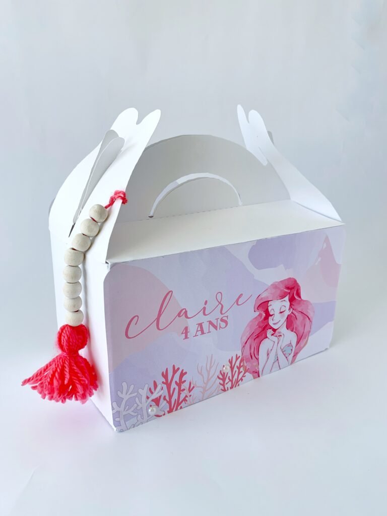 Guirlandes, cake topper, boîtes à bonbons élement de décoration feront rêver petits et grands invités. Préparez-vous à vivre une fête inoubliable, pleine de douceur et d’aventure, dans une ambiance enchantée digne du royaume d’Ariel !